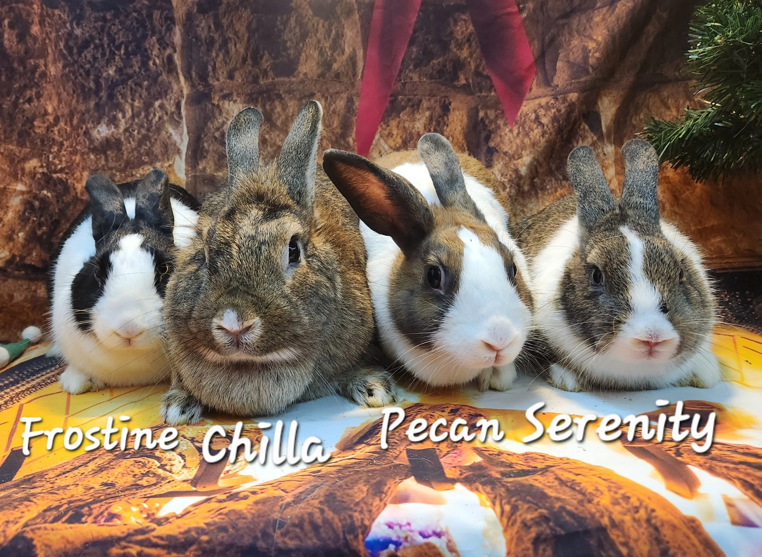 Chilla, Serenity, Pecan and Frostine are all bonding. There is a $20 discount if you adopt two. Their bio is under Dutch and lion heads.